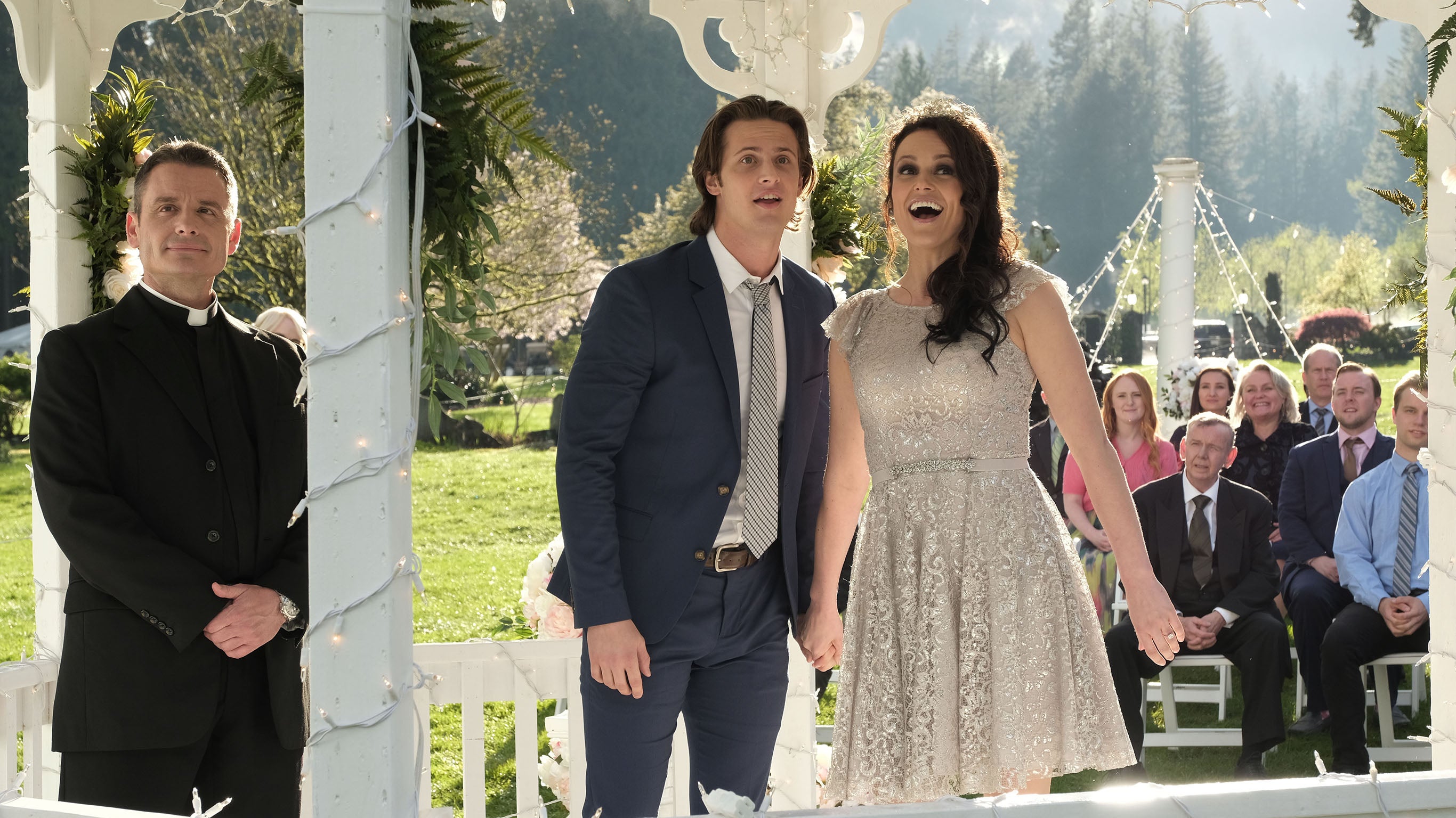 Avec l'aide de sa fille, grace, olivia choisit une auberge près d'un lac pour célébrer son mariage. Avec l'aide de sa fille, grace, olivia choisit une auberge près d'un lac pour célébrer son mariage. Cependant, ses plans sont contrariés quand elle voit arriver le témoin du marié :